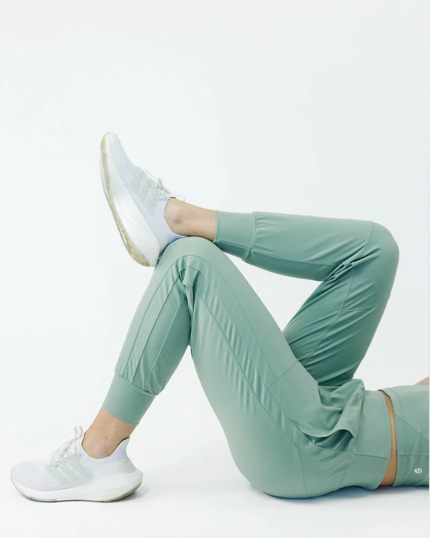 The Trek Jogger is dressy enough to wear to town, lightweight enough to work out in, and chill enough to lounge around the house. Beautiful sage green color.
