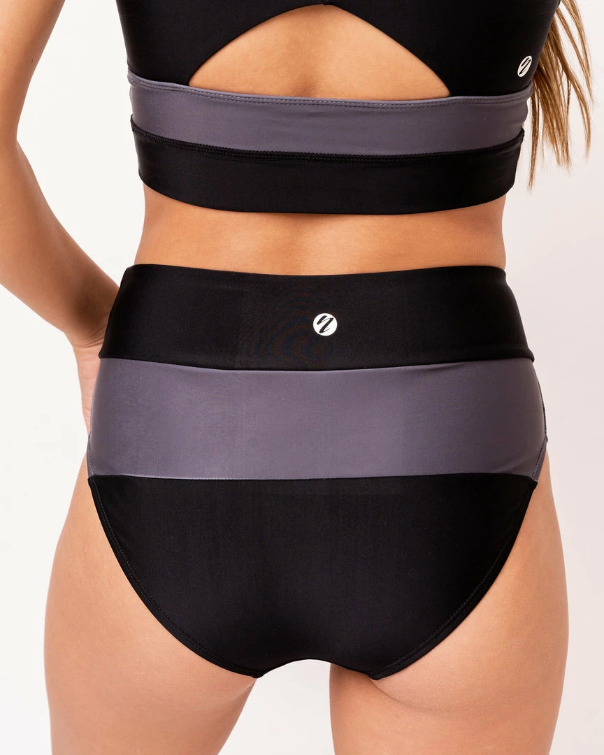 The classic black Horizon bottom Is designed to mix + match all of the Oasis Collection. The mid rise fit offers all day comfort with active coverage. Made for movement!Â