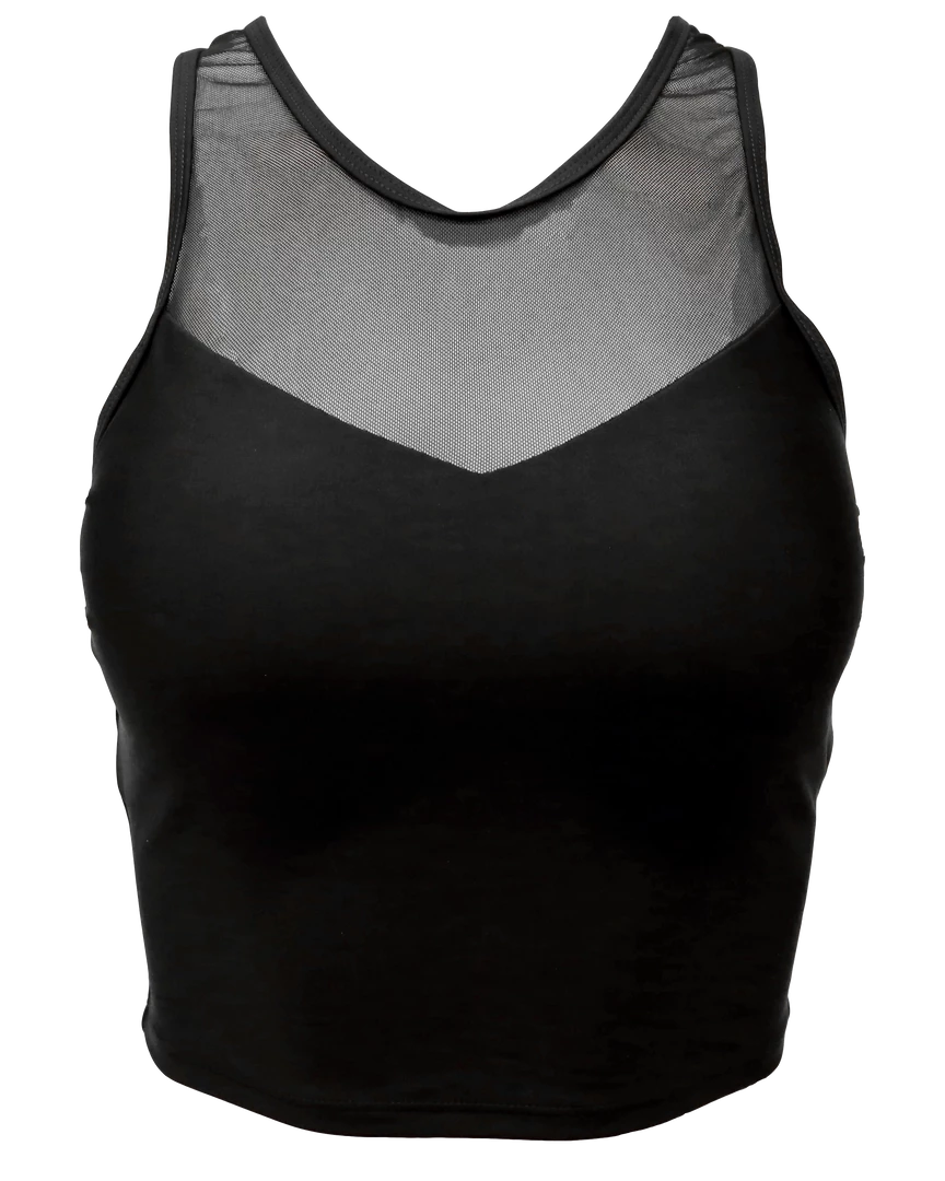 The Mesh Racerback Crop is fully lined with buttery-soft, black luxe lining