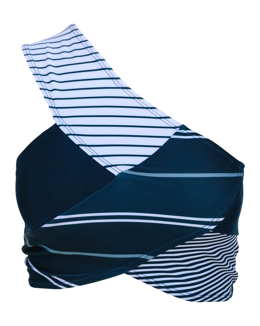 Looking for something NEW and DIFFERENT? This patchwork design is just what you have been waiting for! The one-shoulder, flattering fit keeps you covered and secure while showing off your style as you confidently dive into all your outdoor activities.