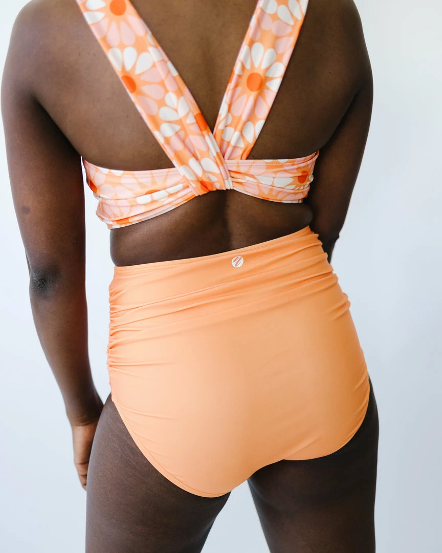 Designed to meet your many requests for a high-rise bottom, this is the one! The Nani High Rise Bottom is just the right height with just the right amount of ruching for a super flattering fit. Dive in or relax by the pool, we’ve got you covered!