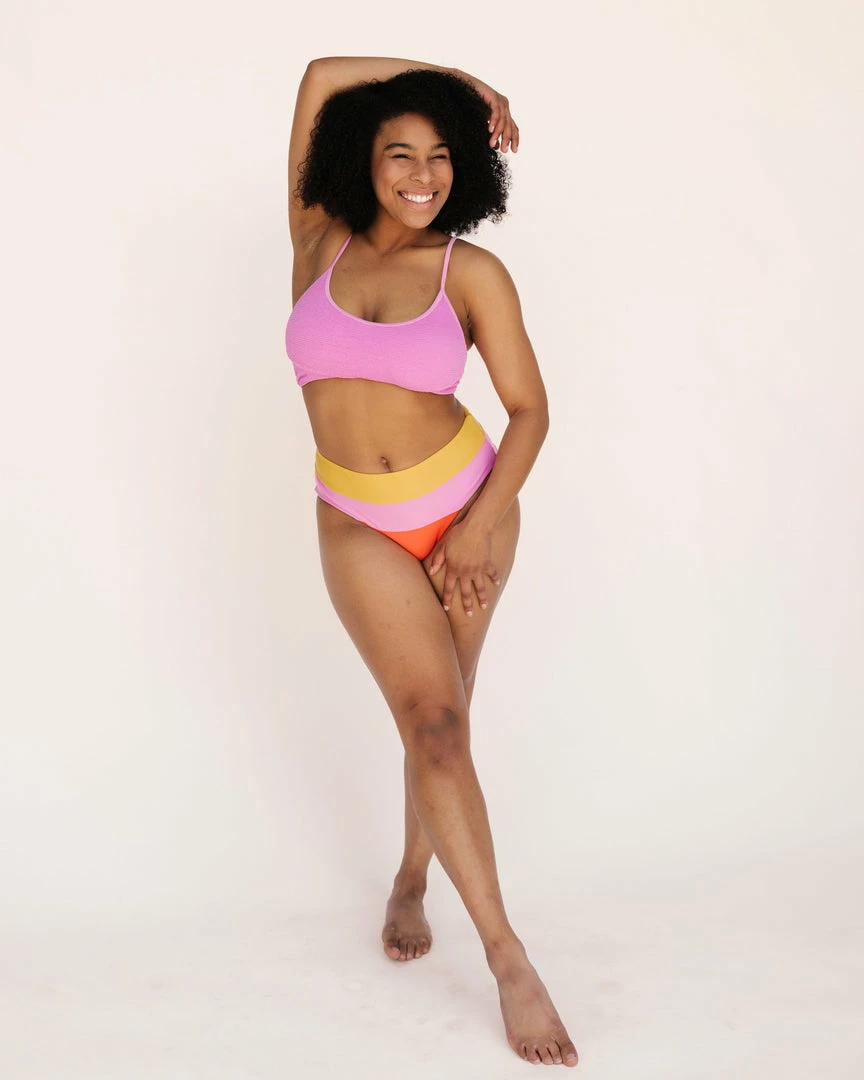 The classic black Horizon bottom Is designed to mix + match all of the Oasis Collection. The mid rise fit offers all day comfort with active coverage. Made for movement!Â