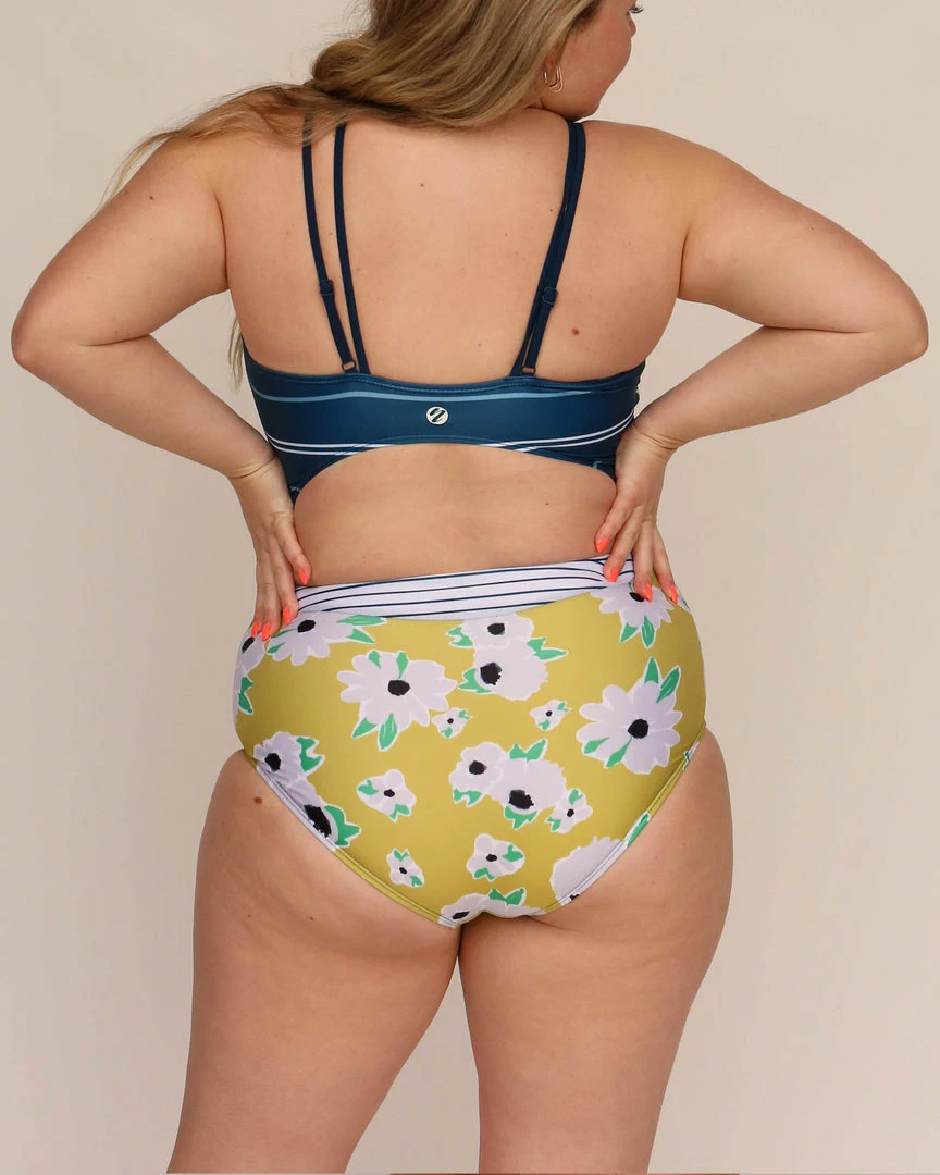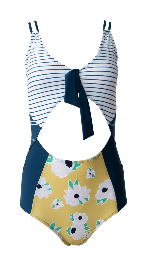 Stand out next time you hit the water in this bold mixed print fan favorite. The Mara High Tide One Piece has adjustable straps to fit every height and wouldn’t be complete without the classic Nani pockets. Prints include honey-lime floral, white and navy pinstripe, Kai stripe, and solid navy blue accents.