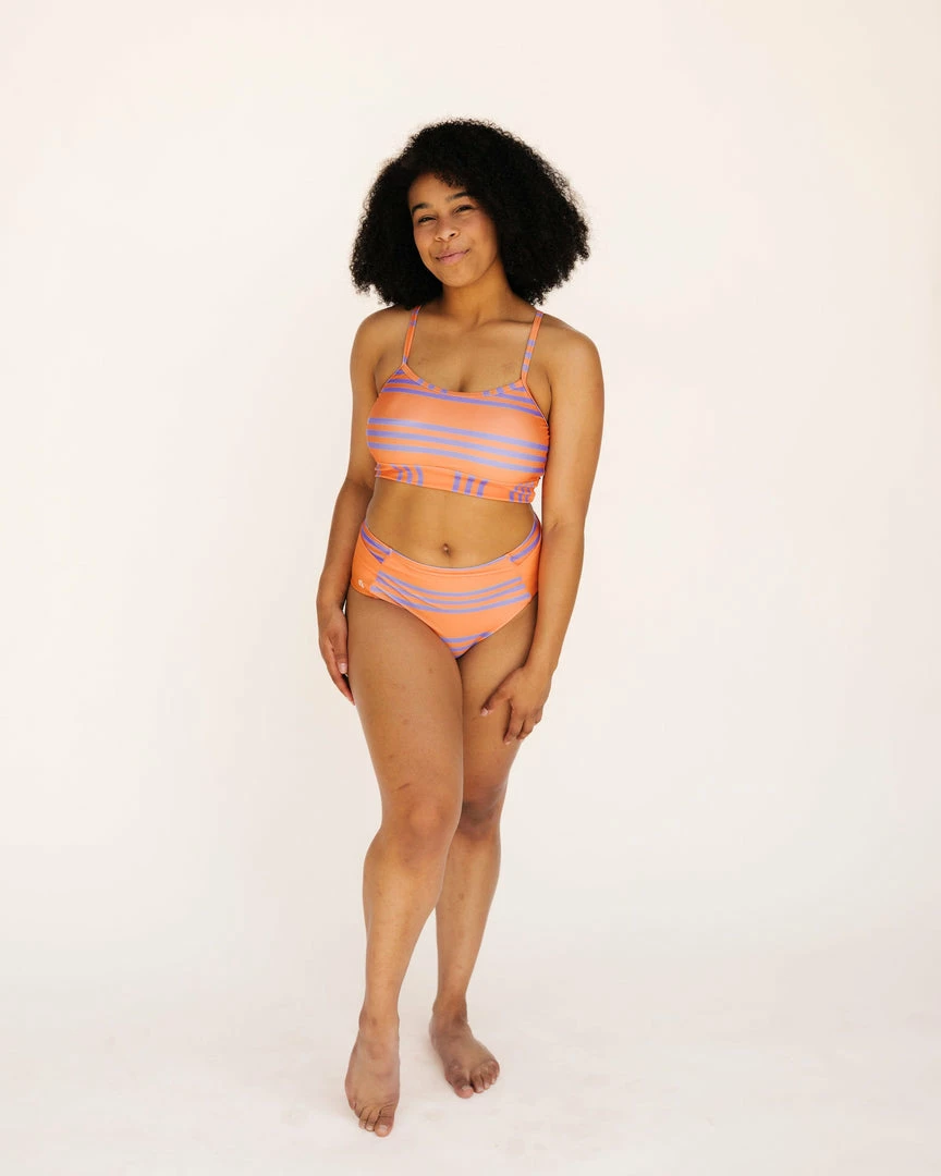Comfortable AND supportive, the Shaka Bralette has multi-colored straps and just the right length to look good and feel good in and out of the water. Â