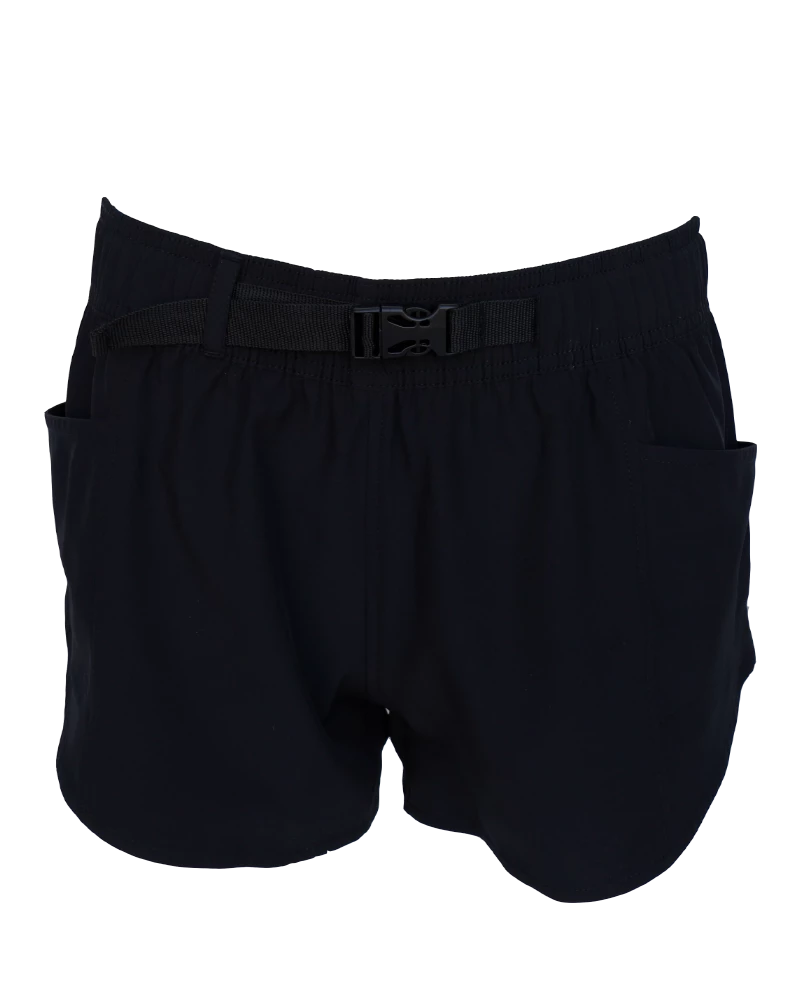 The perfect pair of shorts for everything from swimming to hiking and everything in between, our Nani Hybrid Explorer is ready for all your outdoor adventures! Solid black with a black built-in webbing belt strap and side release buckle.
