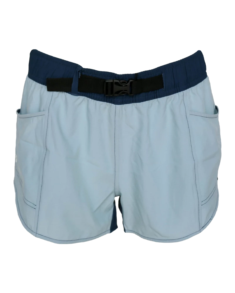 The perfect pair of shorts for everything from swimming to hiking and everything in between, our Nani Hybrid Explorer is ready for all your outdoor adventures! Solid Navy back and waistband with a lighter Illusion Blue in front and a black built-in webbing belt strap and side release buckle.