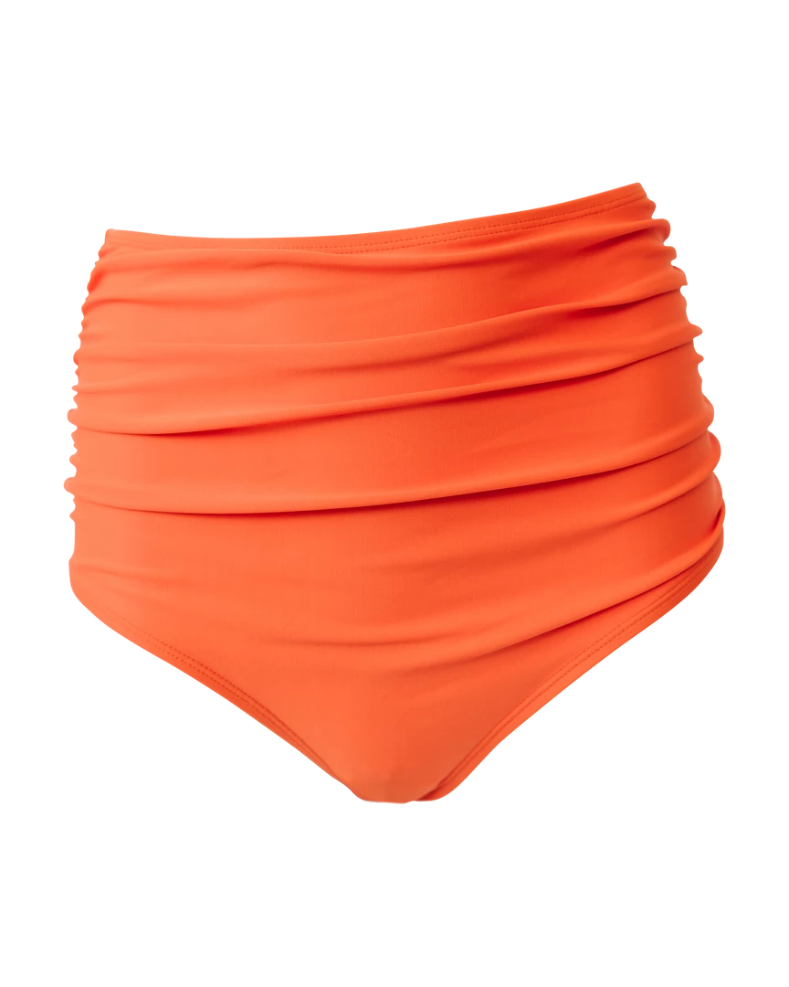 Designed to meet your many requests for a high-rise bottom, this is the one! The Nani High Rise Bottom is just the right height with just the right amount of ruching for a super flattering fit. Dive in or relax by the pool, we’ve got you covered! Our brand new bright tangerine color will have you in style all year.