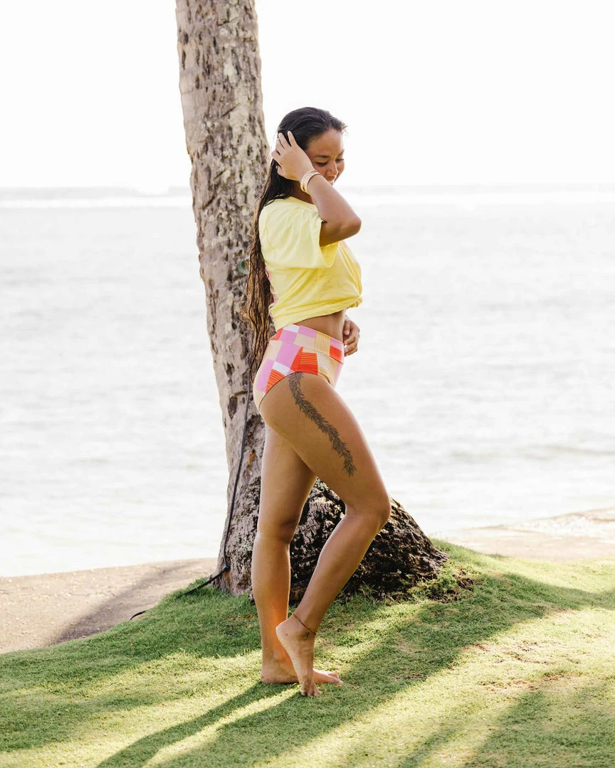 Mixing color and style, this mid rise bottom mixes and matches with a variety of tops in the Endless Summer Collection.  Our new colorblocked pattern adds a modern flair to a classic style.