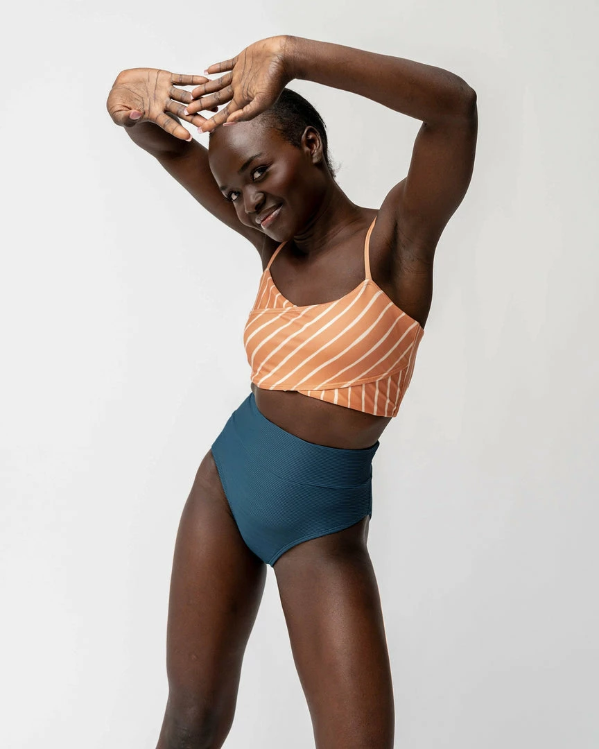 Our new ribbed fabric adds a modern flair to a classic style. Coastal blue is a more muted shade of navy compared to our darker Navy blue.