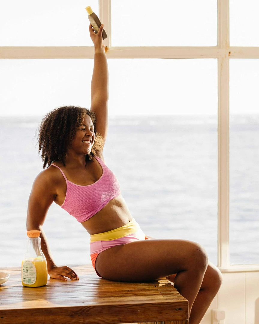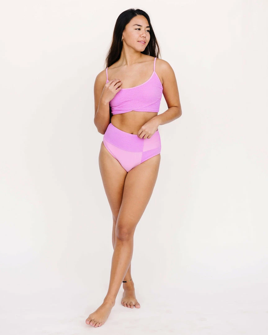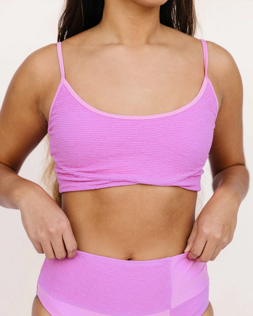 The Textured Liv Tone Crop is the perfect bold top with a soft texture. Adjustable spaghetti straps for comfort and minimal tan lines. A 2022 favorite to say the least!