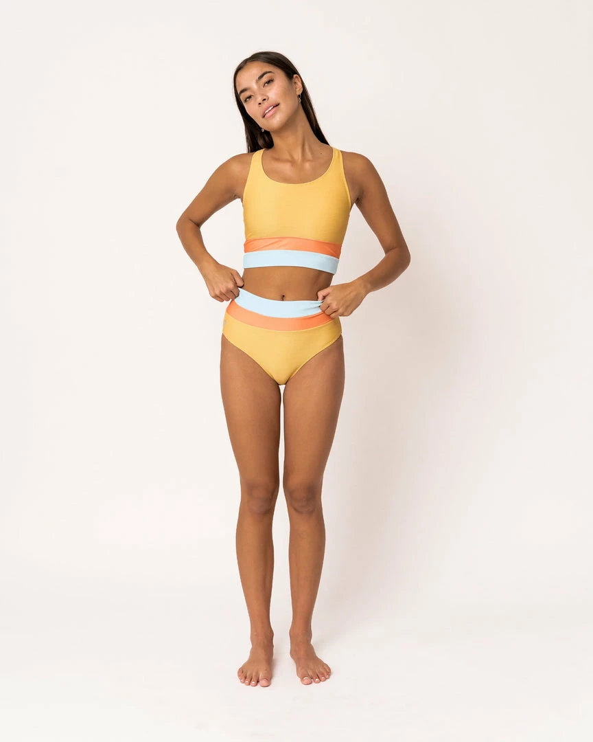The Nani Cut Back Swim Crop offers the comfort and support of a favorite sports bra, designed as a hybrid for yoga class and all your outdoor adventures.
